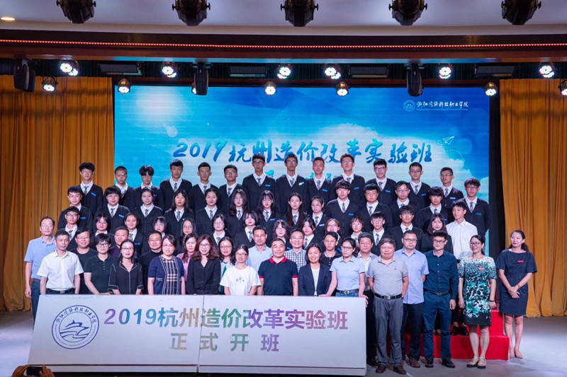 9月25日,2019杭州造价改革实验班的开班典礼在浙江同济科技职业学院小剧场隆重举行。省造价管理总站韩英副站长、市建委市场处郭群处长、市造价和投资中心袁旻主任、秦嘉副主任、市造价协会陆开林书记、学院党委书记江影、学院院长梁国钱、学院部分行政部门负责人、产学研联盟企业代表、学院部分行政部门负责人教师和实验班全体学生共计200余人参加开班典礼。学院党委委员、纪委书记应芬主持典礼。